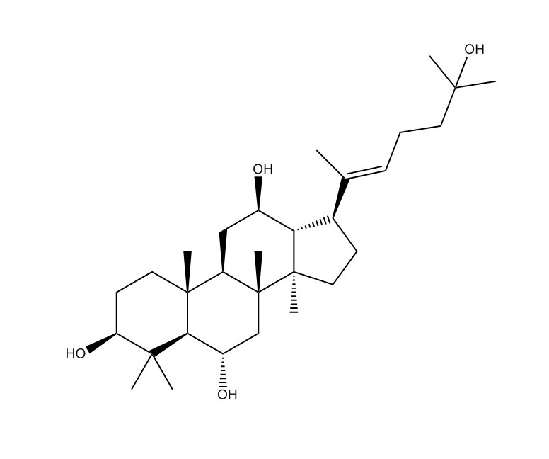 【英文別稱】 (3S,5R,6S,8R,9R,10R,12R,13R,14R,17S)-17-[(E)-6-hydroxy-6-methylhept-2-en-2-yl]-4,4,8,10,14-pentamethyl-2,3,5,6,7,9,11,12,13,15,16,17-dodecahydro-1H-cyclopenta[a]phenanthrene-3,6,12-triol