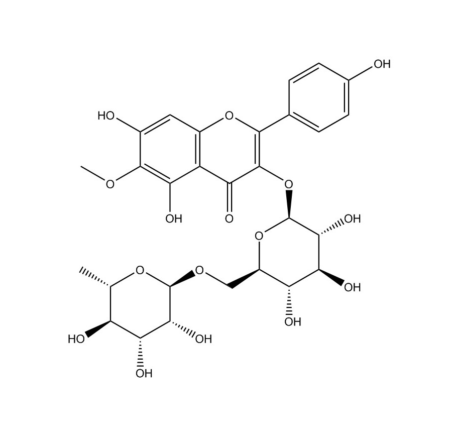 【英文別稱】 3,4’,5,7-Tetrahydroxy-6-Methoxykaempferol 3-O-rutinoside